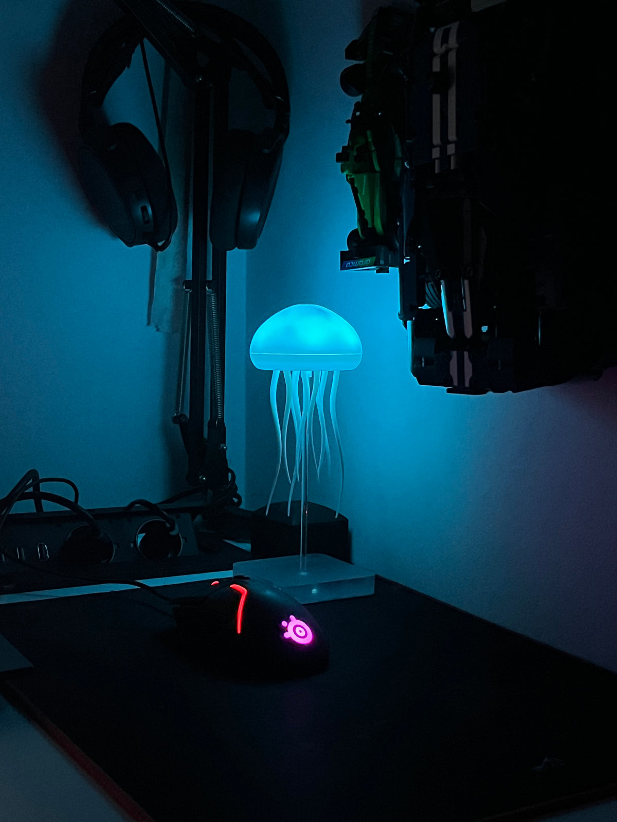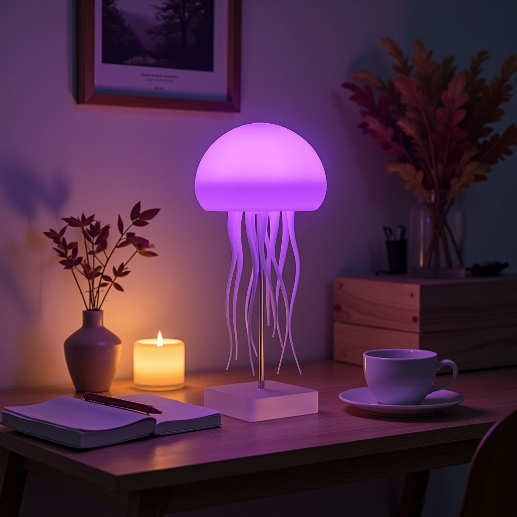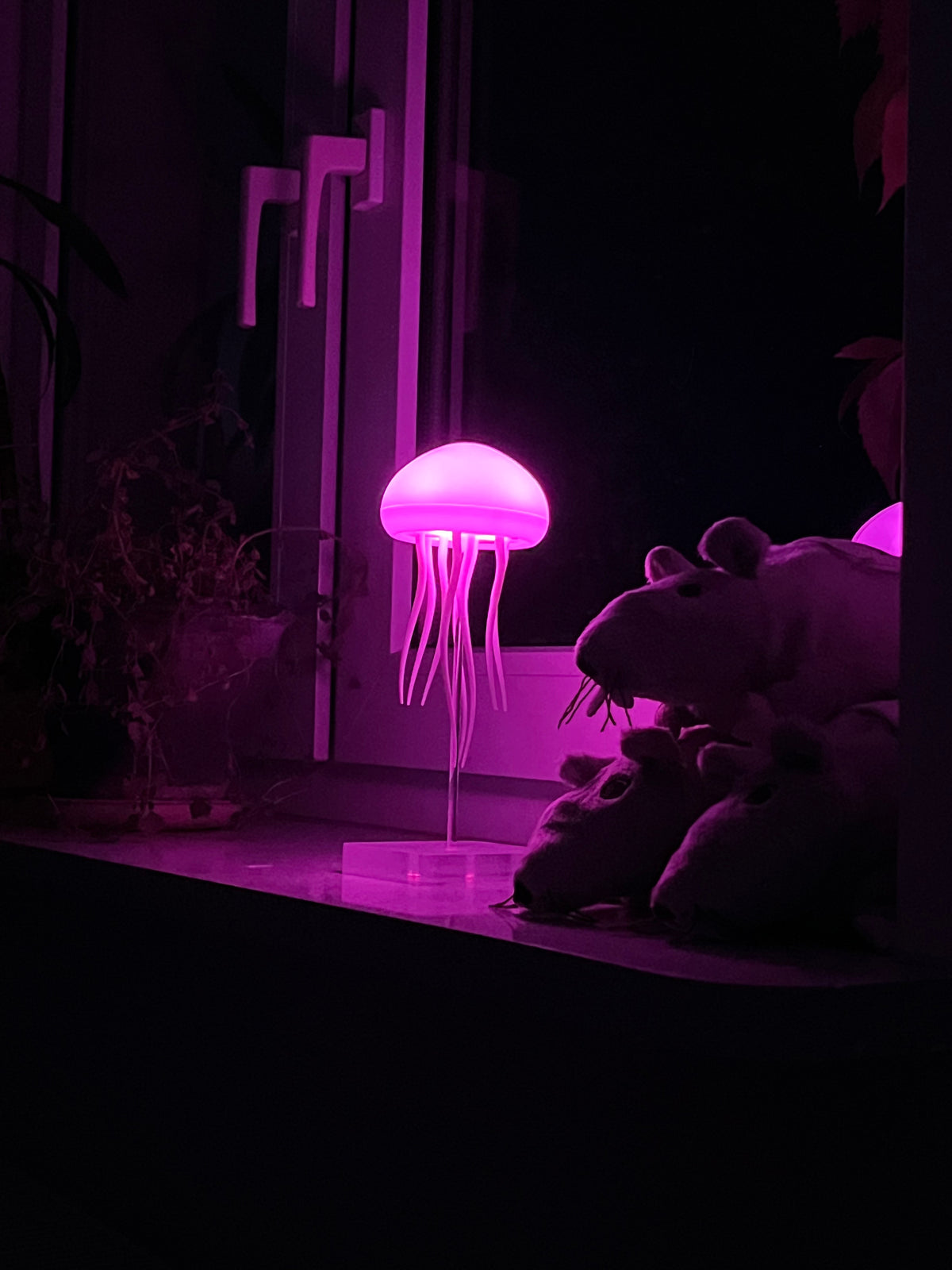 Przekształć swoją przestrzeń w spokojne, podwodne sanktuarium dzięki tej urzekającej lampie, która prezentuje meduzy tańczące z gracją. Idealna do relaksu, stanowi wyjątkowy element dekoracyjny i przemyślany prezent, który wywołuje radość